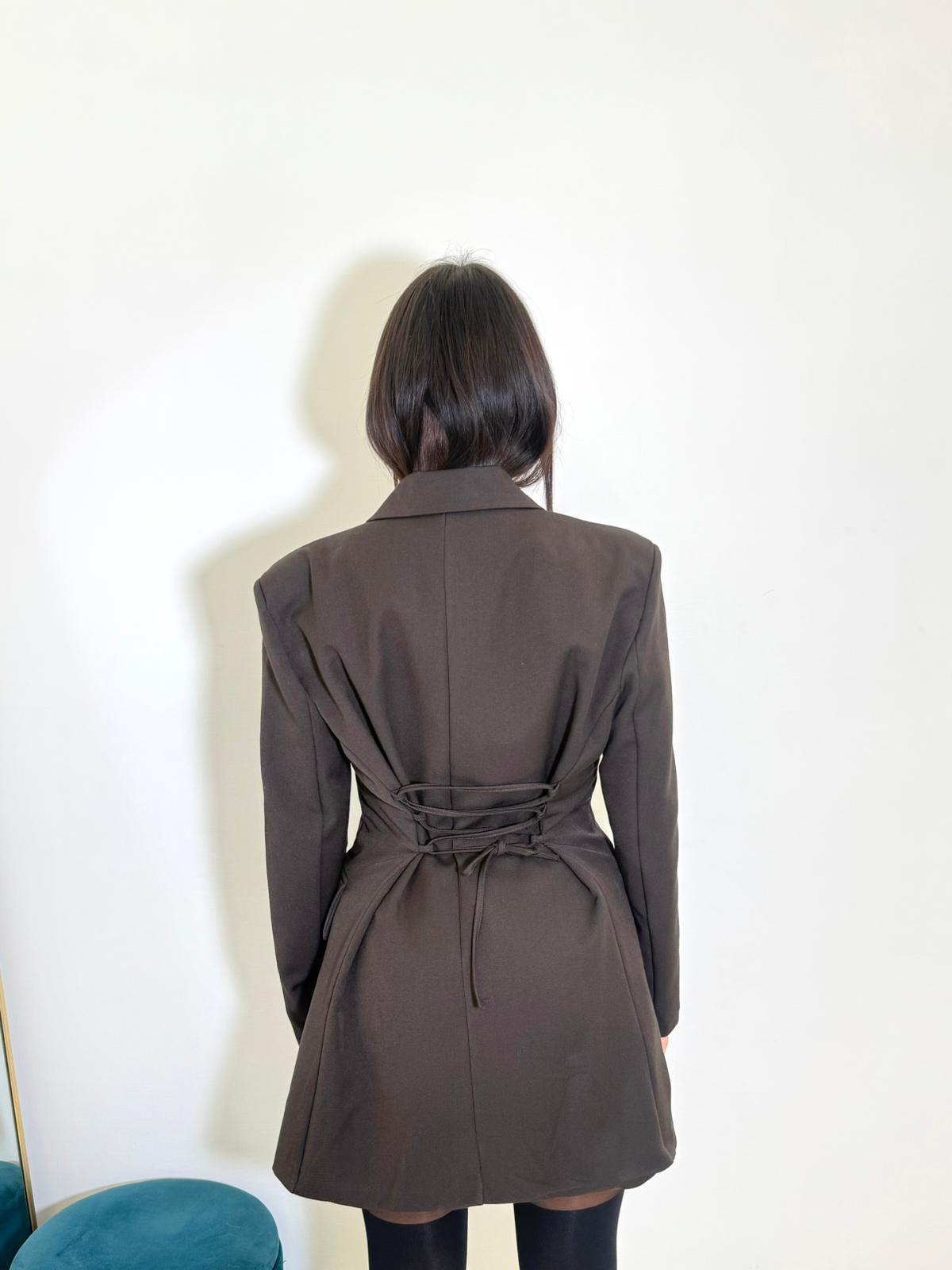Abito blazer con bottoncini in simil cotone e laccetto regolabile anteriore intrecciato.