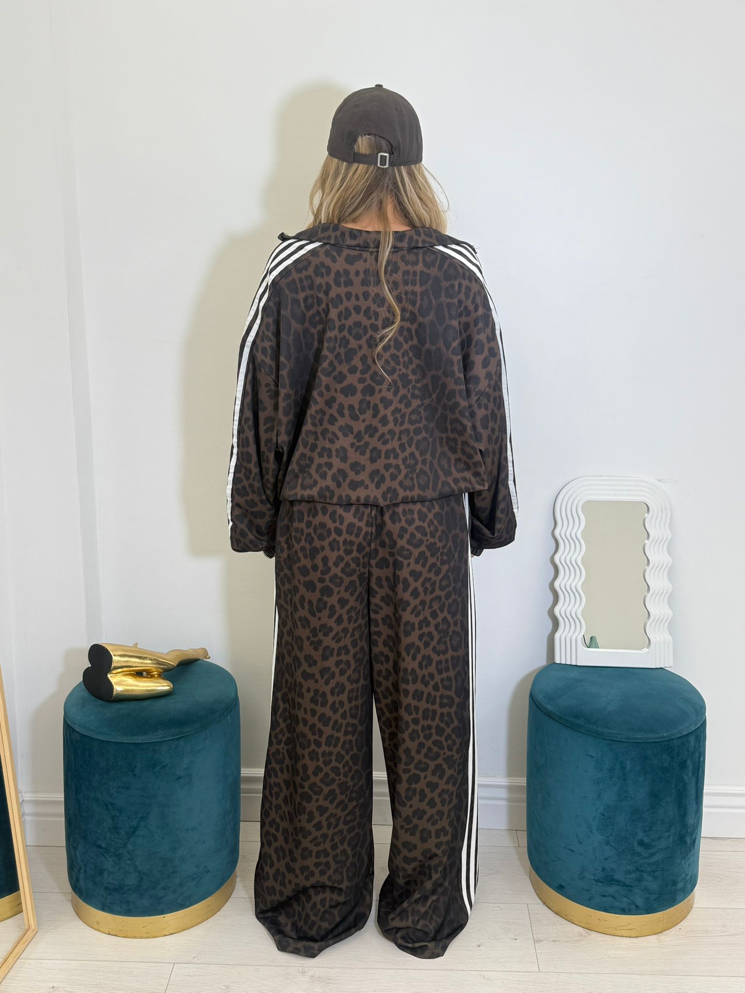 coordinato in simil cotone, composto da felpa over con zip e pantalone balloon con elastico in vita.