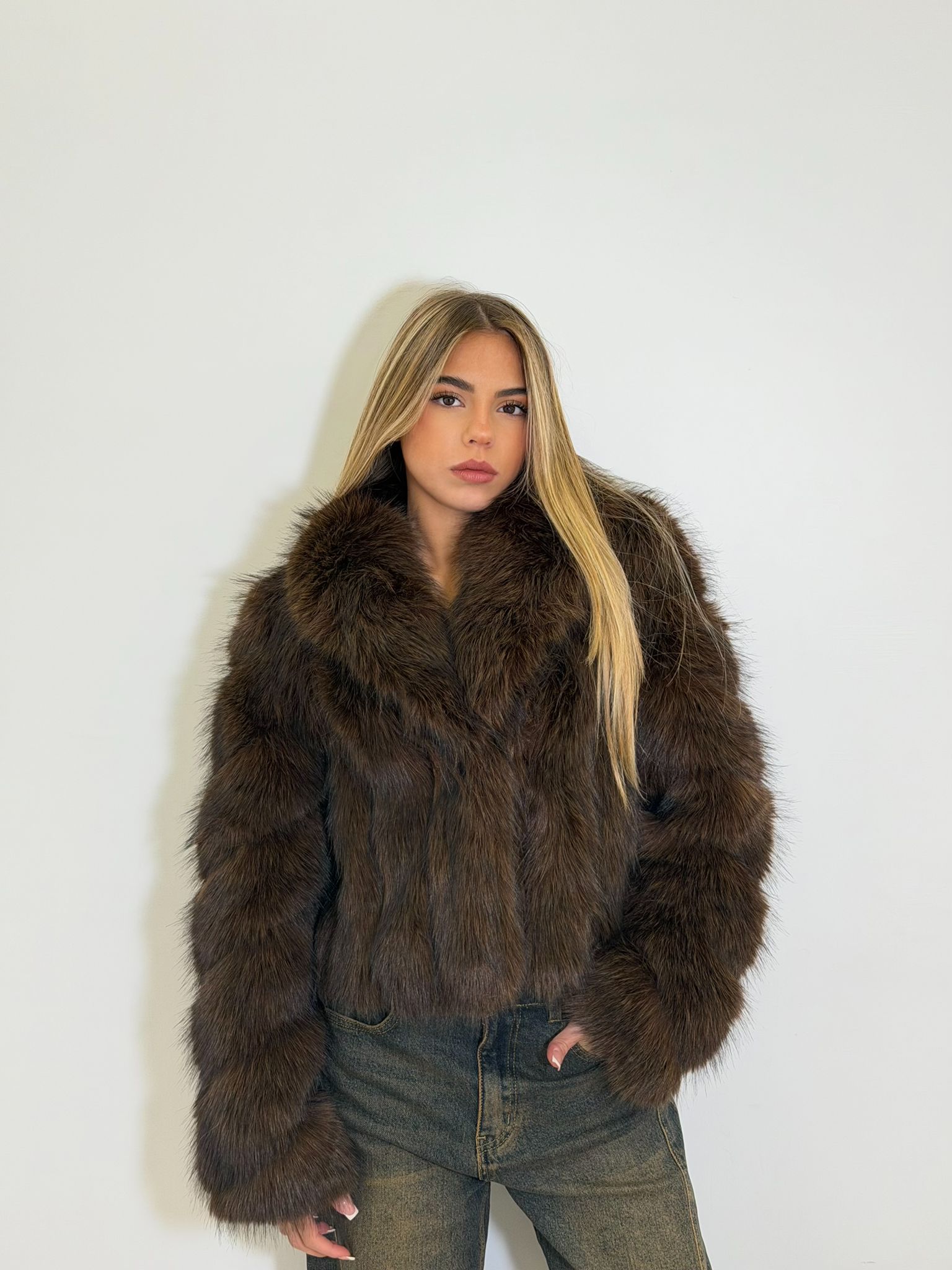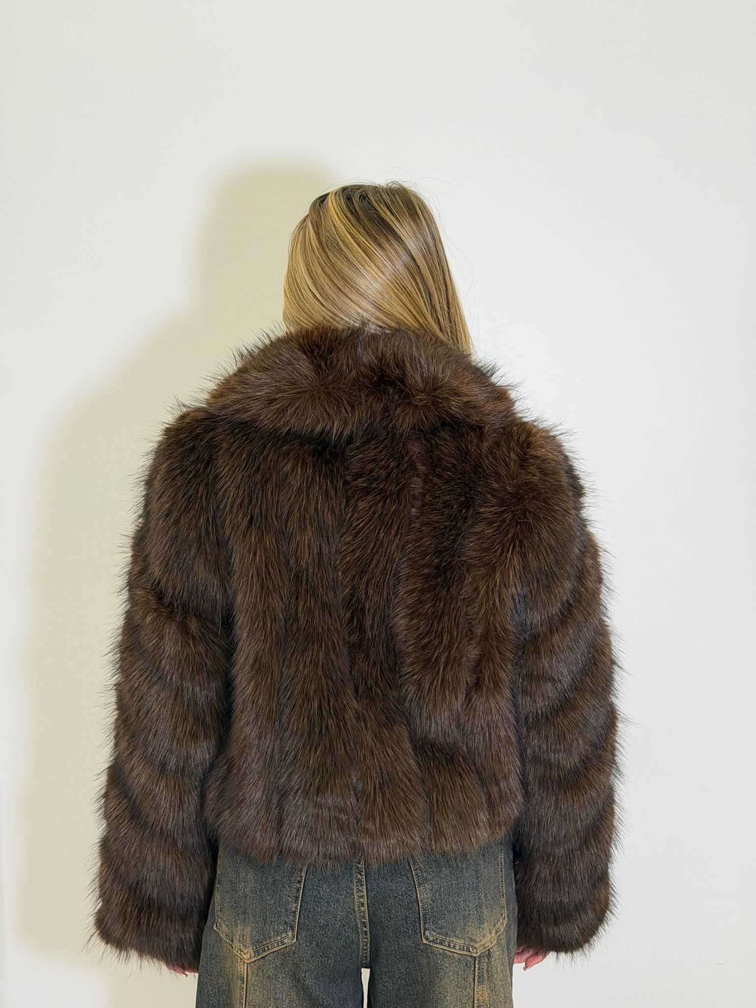 Eco- pelliccia a pelo corto sintetico a maniche lunghe.