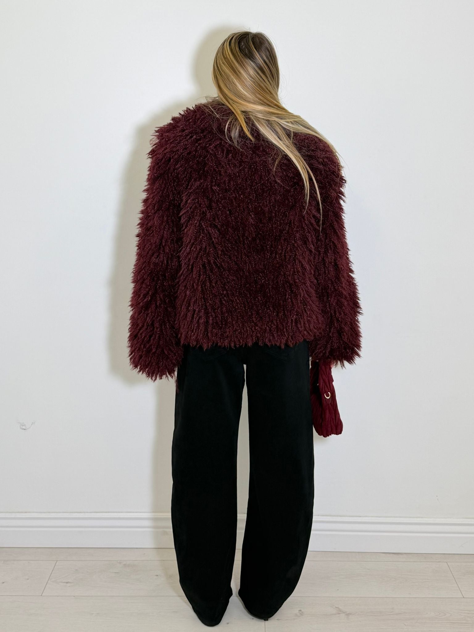 Eco- pelliccia crop a pelo lungo sintetico a maniche lunghe e doppio petto.