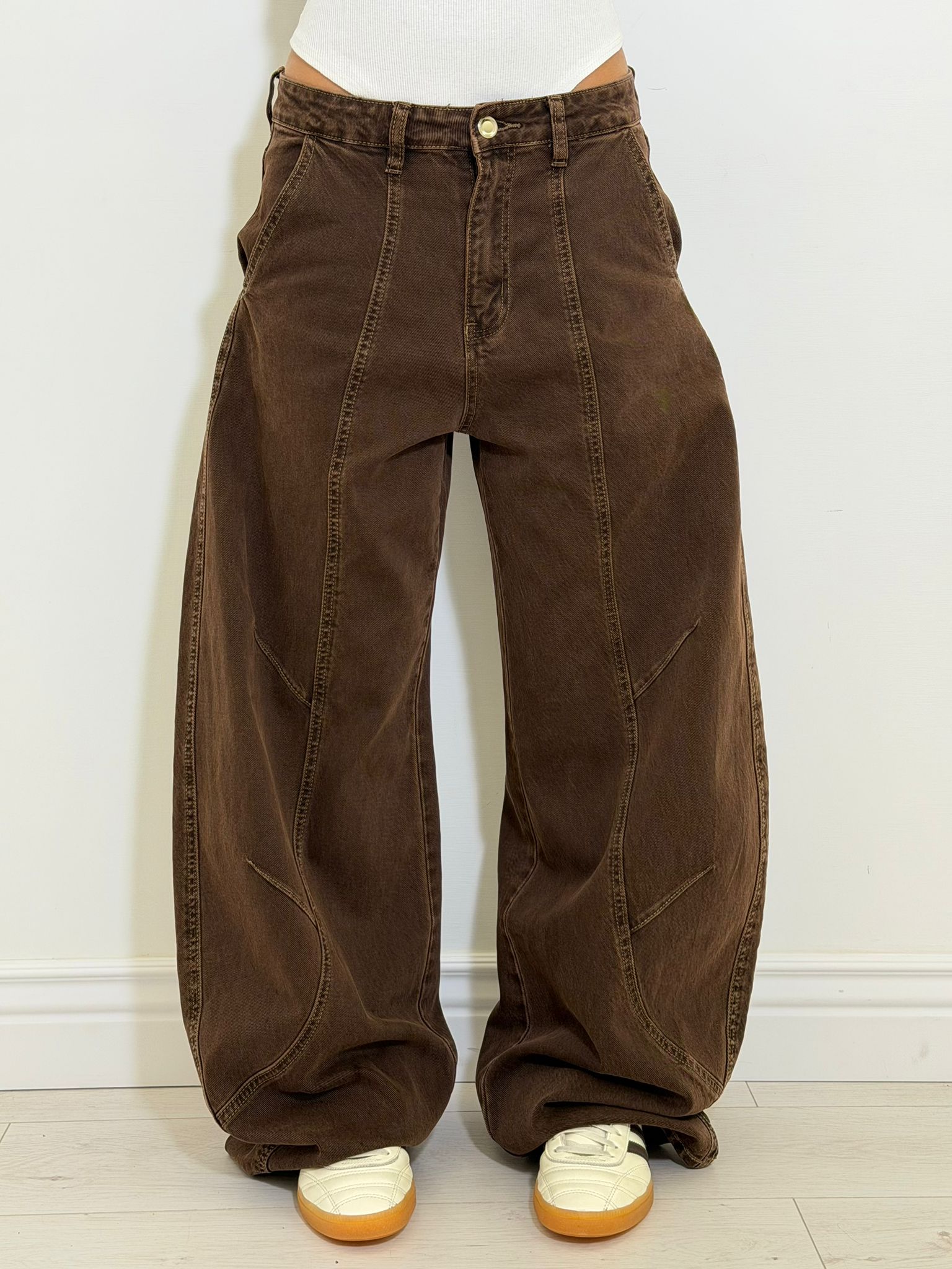jeans in tela fissa,modello cargo balloon, con tasconi.