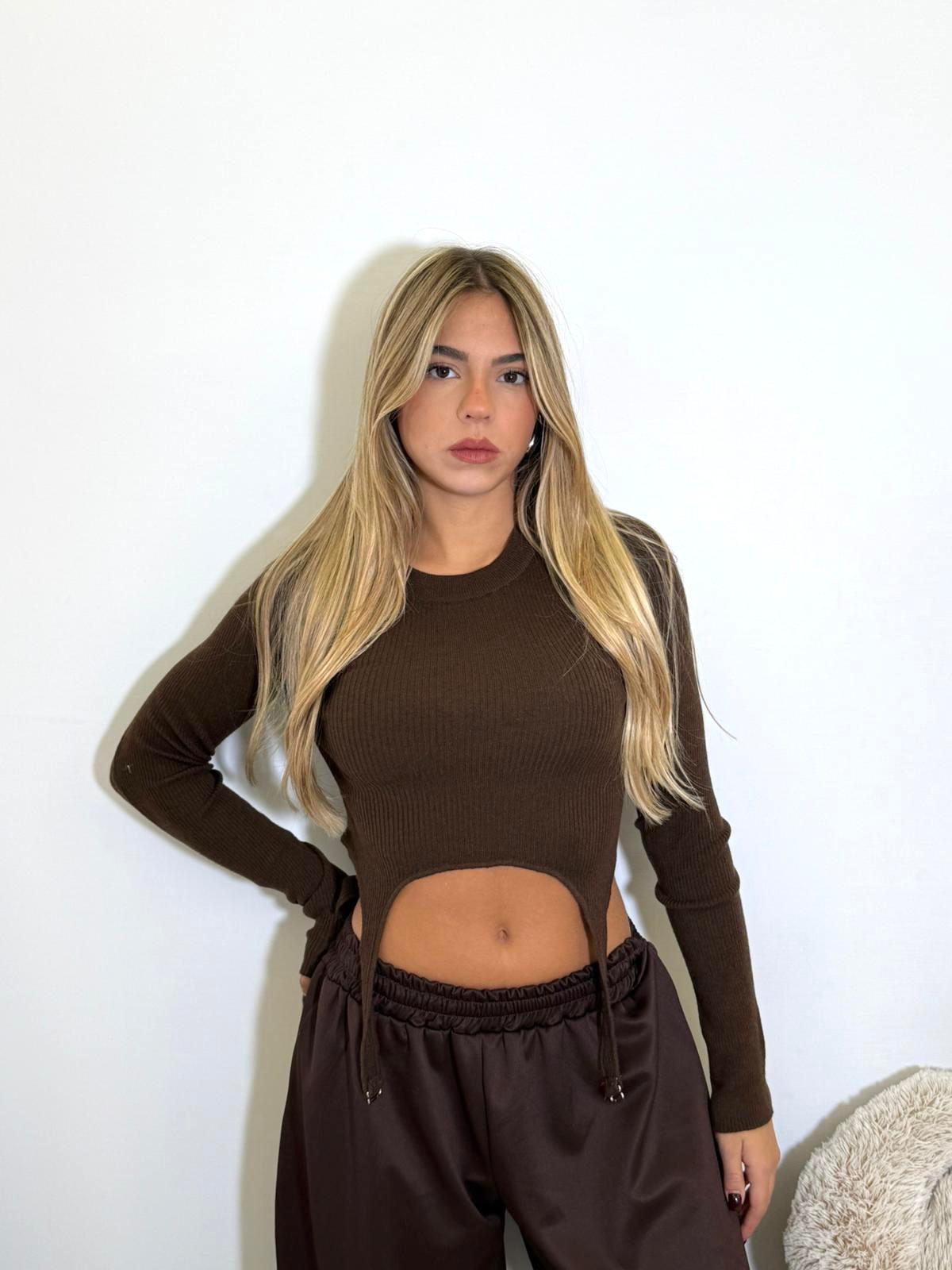 Maglia in simil cotone velato a maniche lunghe con ghette.