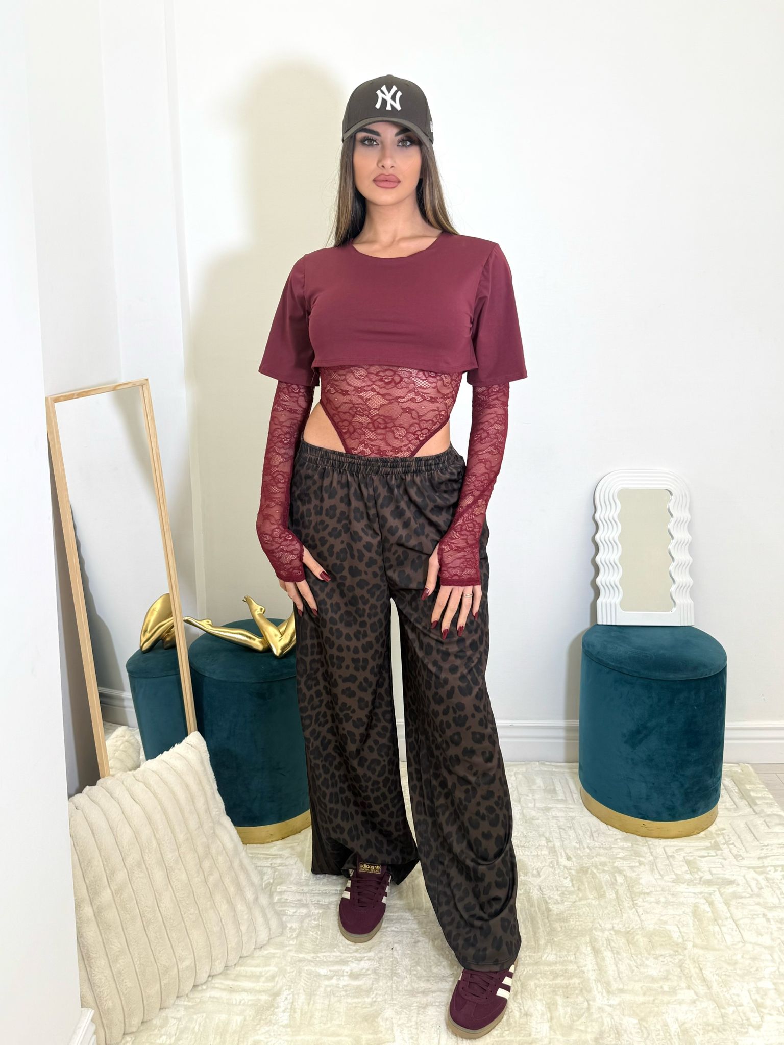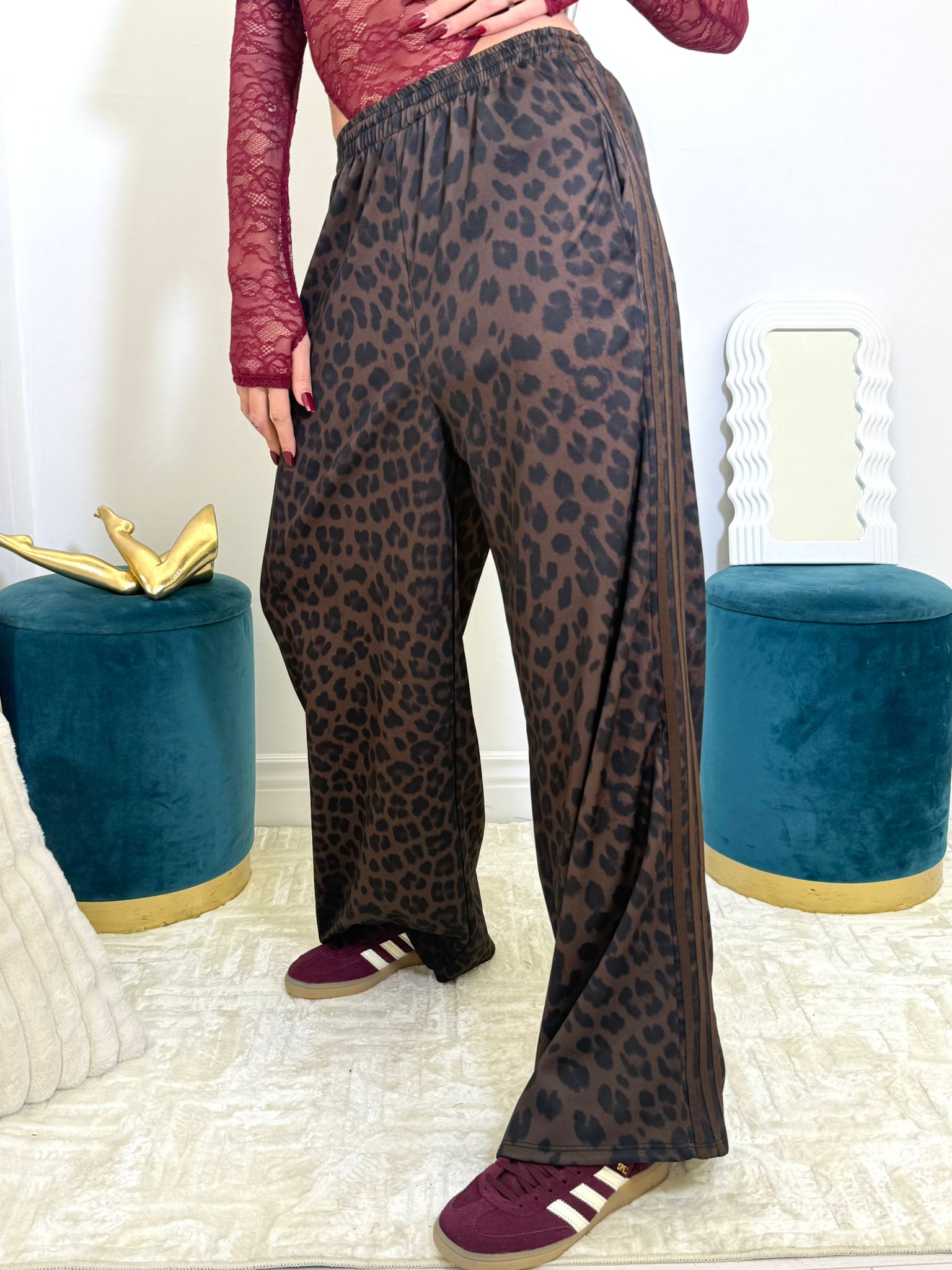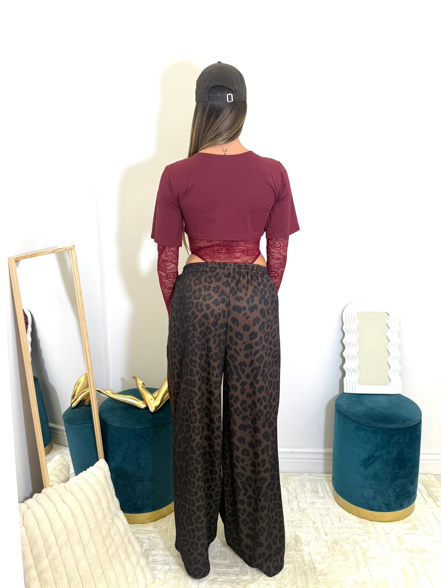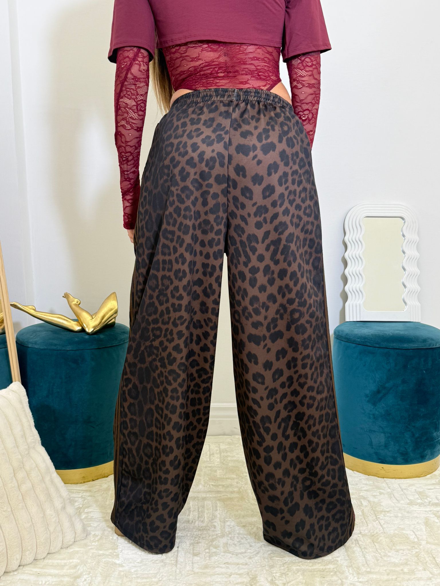 pantalone leopardato con vita elasticizzata, vestibilità ampia .