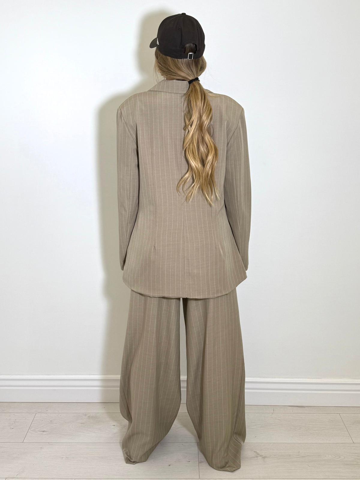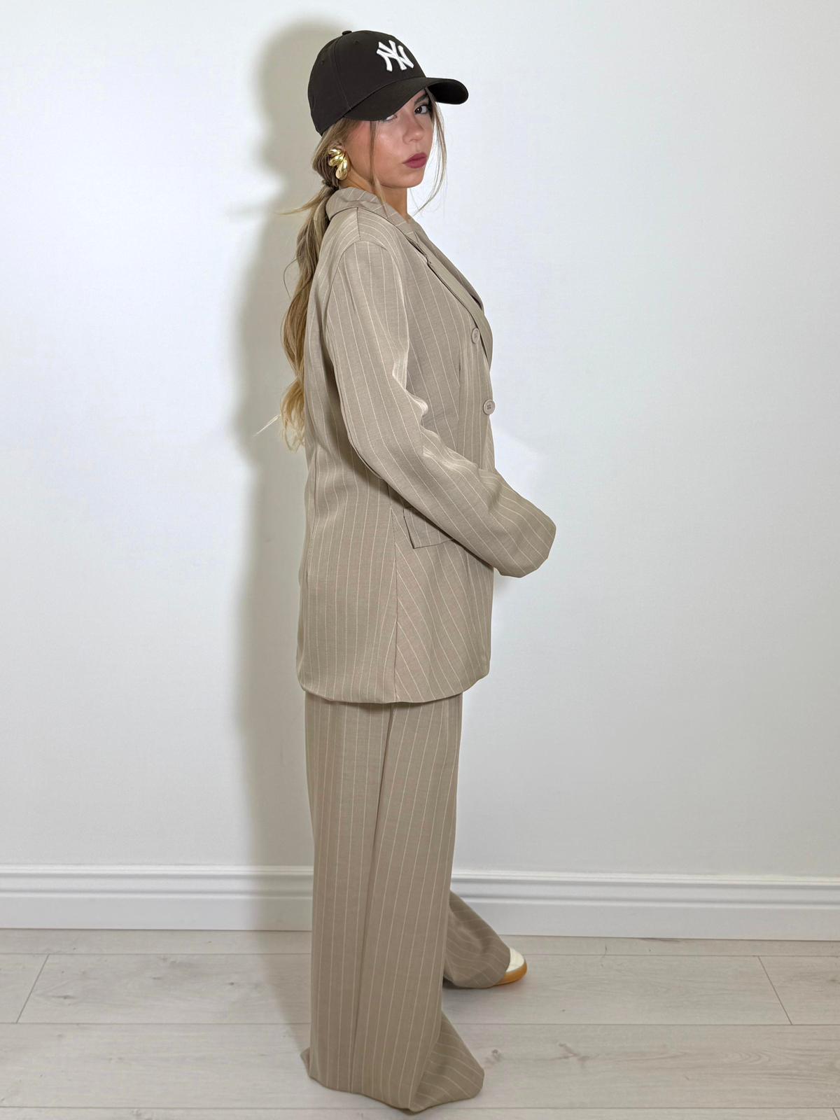 Coordinato in cotone composto da blazer over doppio petto cin bottoncini ,tasche finte e spalline e pantalone palazzo over.